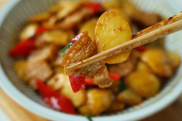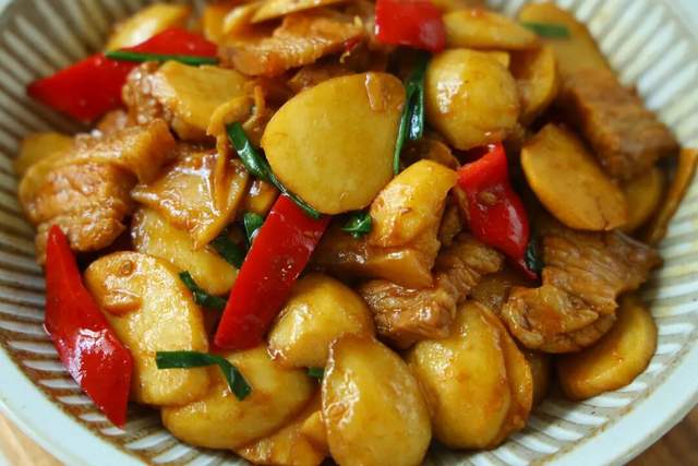 掀开锅盖的瞬间,你就知道这搭配有多妙——肉香混合着茨菇特有的清香扑面而来。尝一口,茨菇的口感很特别,看着脆生生的,吃起来却是粉粉糯糯的,有点像土豆,但更细腻些。裹着五花肉的醇厚油脂,又带着生抽老抽的酱香,还有那么一丝白的微辛,真是把简单的家常味做到了极致。
