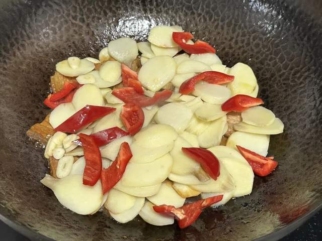 6、果然五花肉可以炒万物,这个味道很好,但听说这个口感很脆爽,但是我这个吃起来是土豆的口感,切的时候很脆爽,但是吃起来粉糯,不知道是不是这个口感,吃过的能分享一下吗?